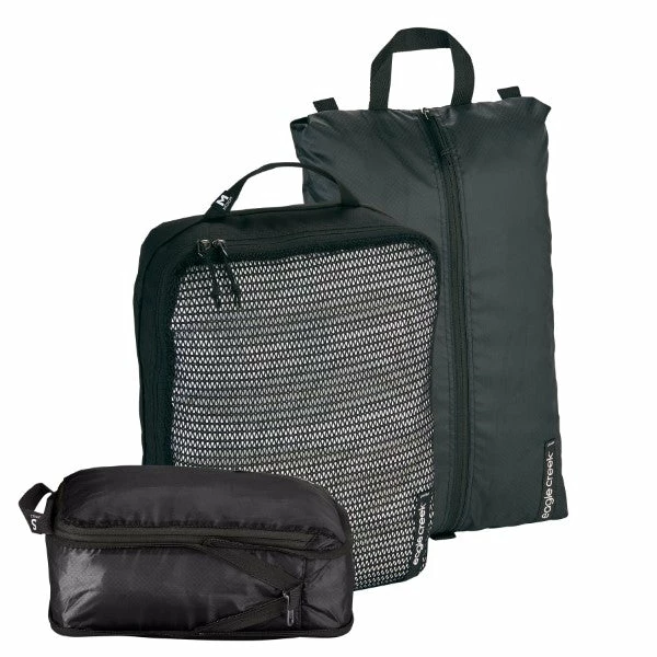- This packing set is a great starter set for any globetrotter looking to perfectly pack up their carry-on. It’s got an organizer for dirty shoes, medium-sized cube for clean/dirty items, and a small compressor to maximize your packing space.